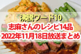 2022年11月18日(金)放送の『沸騰ワード10』。初見の食材で15品以上の絶品料理を生み出す伝説の家政婦、タサン志麻(しま)さんの密着第34弾で紹介されたメニュー14品をまとめました。レシピ本『志麻さんの何度でも食べたい極上レシピ』も大...