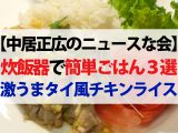 『バカリズム・中丸雄一・カズレーザーの家事初心者の3人が炊飯器に入れて炊くだけ!絶品炊き込みご飯4選』というテーマで放送されました。