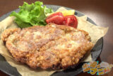 ③肉の皮目をひっぱり、肉にかぶせるように形を整えてから衣をつけ、余分な粉はしっかりと切る